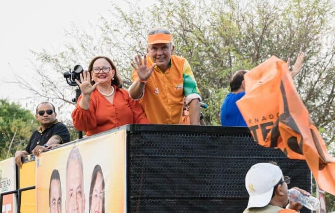 Com o balançar de bandeiras e ao som de jingles que levam os nomes dos candidatos, os apoiadores da coligação “Com a Força do Povo” percorreram uma rota que saiu da parada final do conjunto Universitário III, passando pelos bairros Tucumã, Mocinha Magalhães, bairro da Paz, Conquista, Tancredo Neves, Jorge Lavocat, Defesa Civil, São Francisco e Aviário.