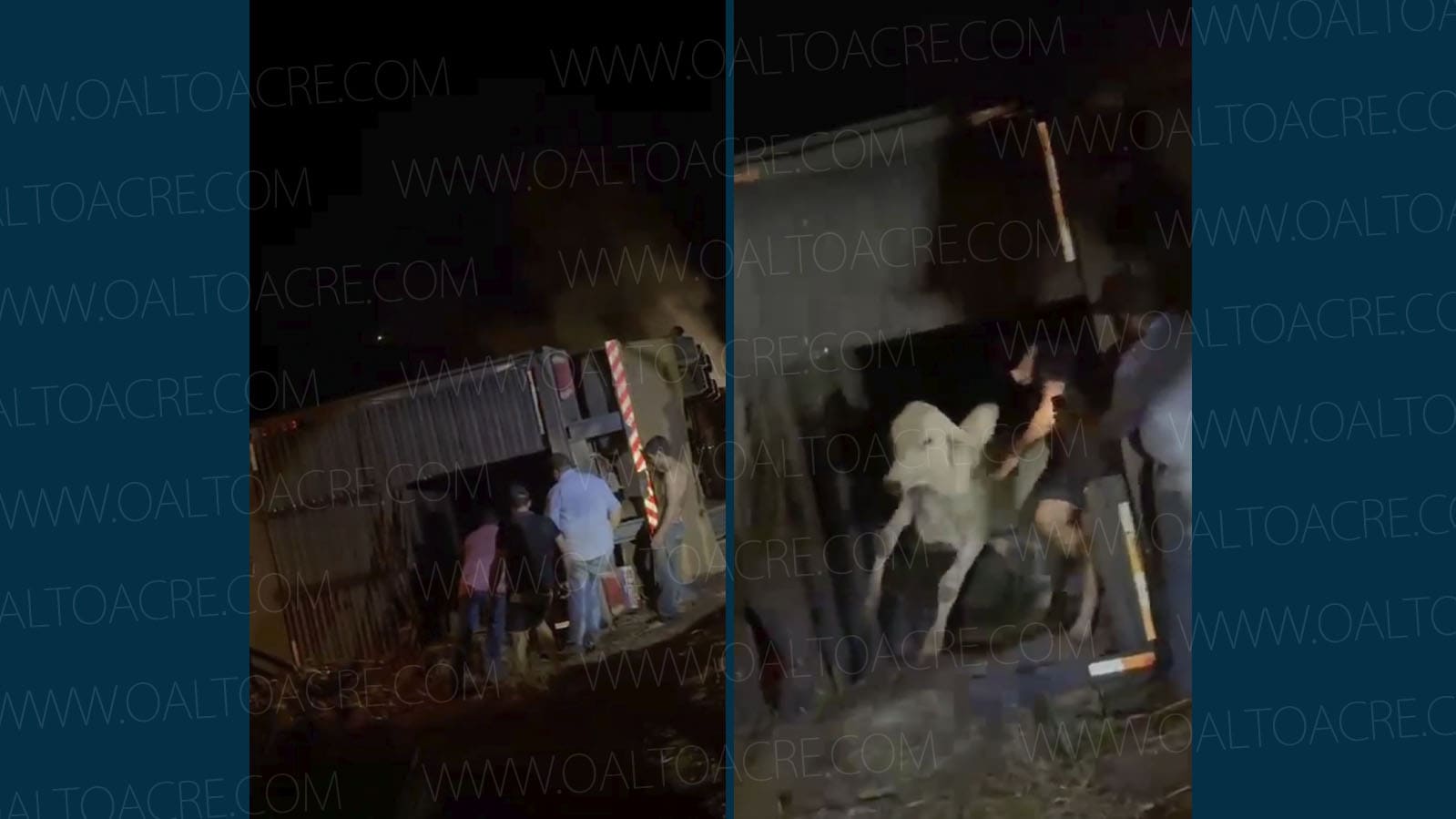 Na noite deste sábado (27), um grave acidente chamou a atenção dos moradores de Vista Alegre do Abunã, em Rondônia. Uma carreta que transportava bois saiu da pista, tombou e, em seguida, pegou fogo, provocando um incêndio de grandes proporções.