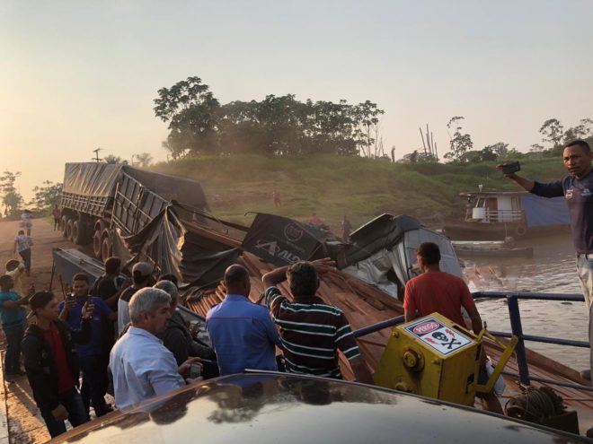Segundo foi registrado por uma pessoa que publicou em grupos de WhatssApp, vídeos do incidente, mostra uma carreta bi-trem carregada com madeira, estava descendo a rampa de acesso à balsa, teria perdido o freio.