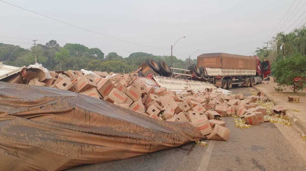 Uma carreta carregada de óleo de cozinha tombou na BR-364, próximo da avenida Mamoré, em Porto Velho (RO) na tarde desta sexta-feira (27). Ainda não se sabe o que causou o acidente.