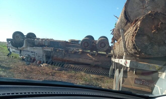 O acidente ocorreu por volta as 7h00 desta quinta-feira, dia 7, na BR 317, no trecho sentido Xapuri/Rio Branco, nas proximidades da Fazenda Três Meninas, quando uma carreta que transportava toras de madeira, perdeu o controle e tombou fora da estrada.
