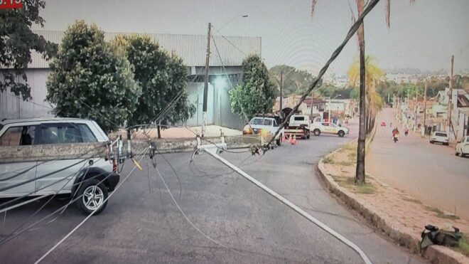 Os funcionários da Energisa estavam aguardando um caminhão muk, para trocar o poste e normalizar a energia elétrica da região, e fazer a liberação da pista.