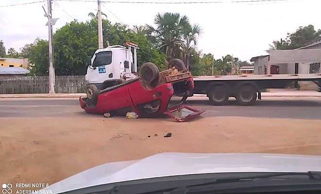 Testemunhas no local relataram que o incidente ocorreu na entrada do Colégio São Francisco, quando o automóvel caiu do lado esquerdo do guincho, virando de cabeça para baixo no meio da estrada, ficando completamente com as quatro rodas para cima.