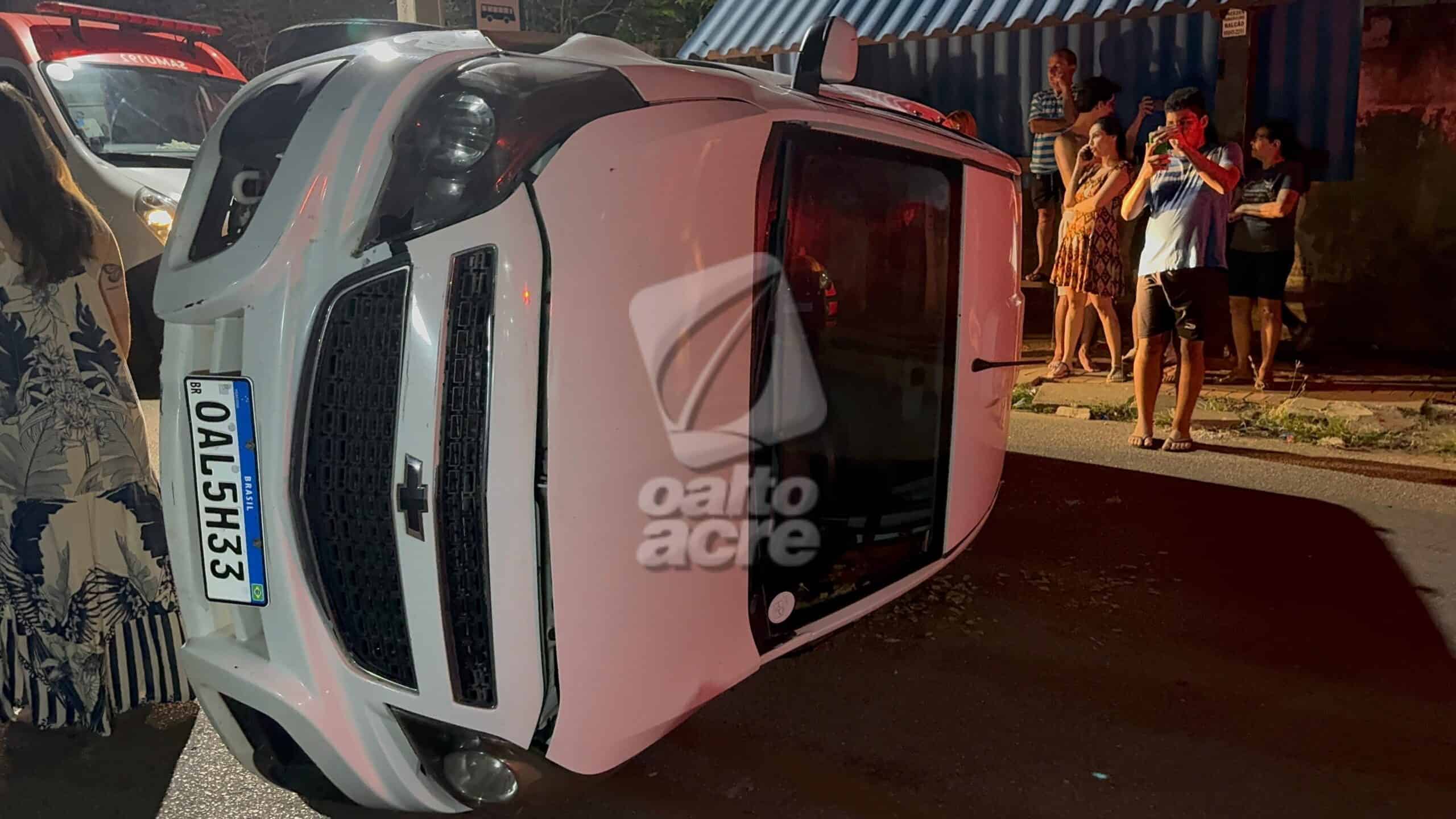 Carro capota e deixa motorista ferido após colisão em Rio Branco