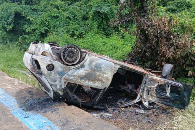 De acordo com o relato do condutor, ele estava no veículo acompanhado da companheira e ambos discutiam no momento do acidente. Durante o desentendimento, um movimento brusco no volante teria feito com que ele perdesse o controle da direção, provocando a colisão. Após o impacto, o carro capotou e foi rapidamente tomado pelo fogo.