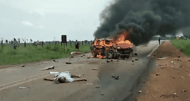 O veículo que ficou no meio da pista iniciou um incêndio e não se sabe se havia mais pessoas no seu interior.