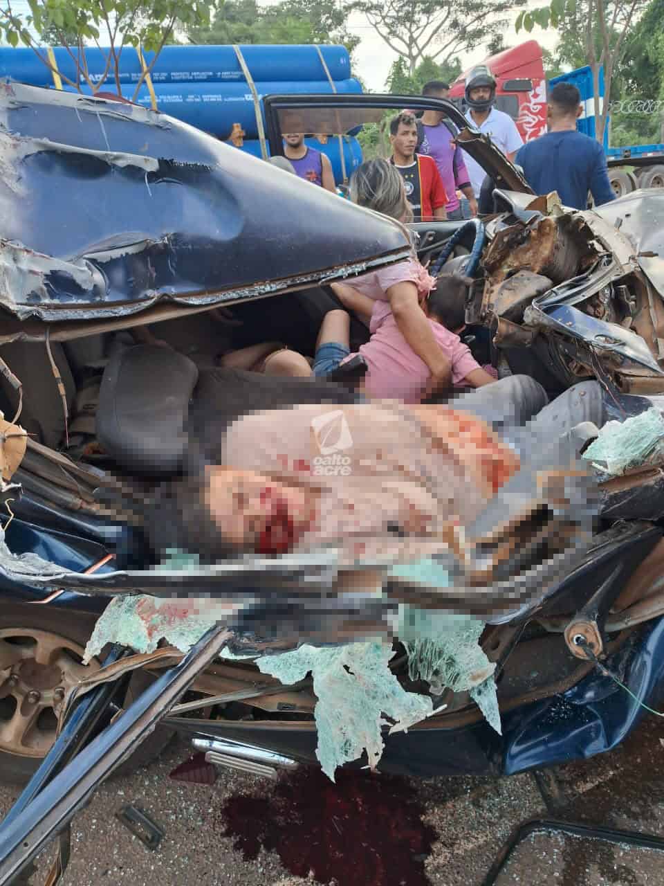 Violento impacto arrancou parte do teto do veículo; vítimas foram socorridas e levadas ao hospital em Brasileia