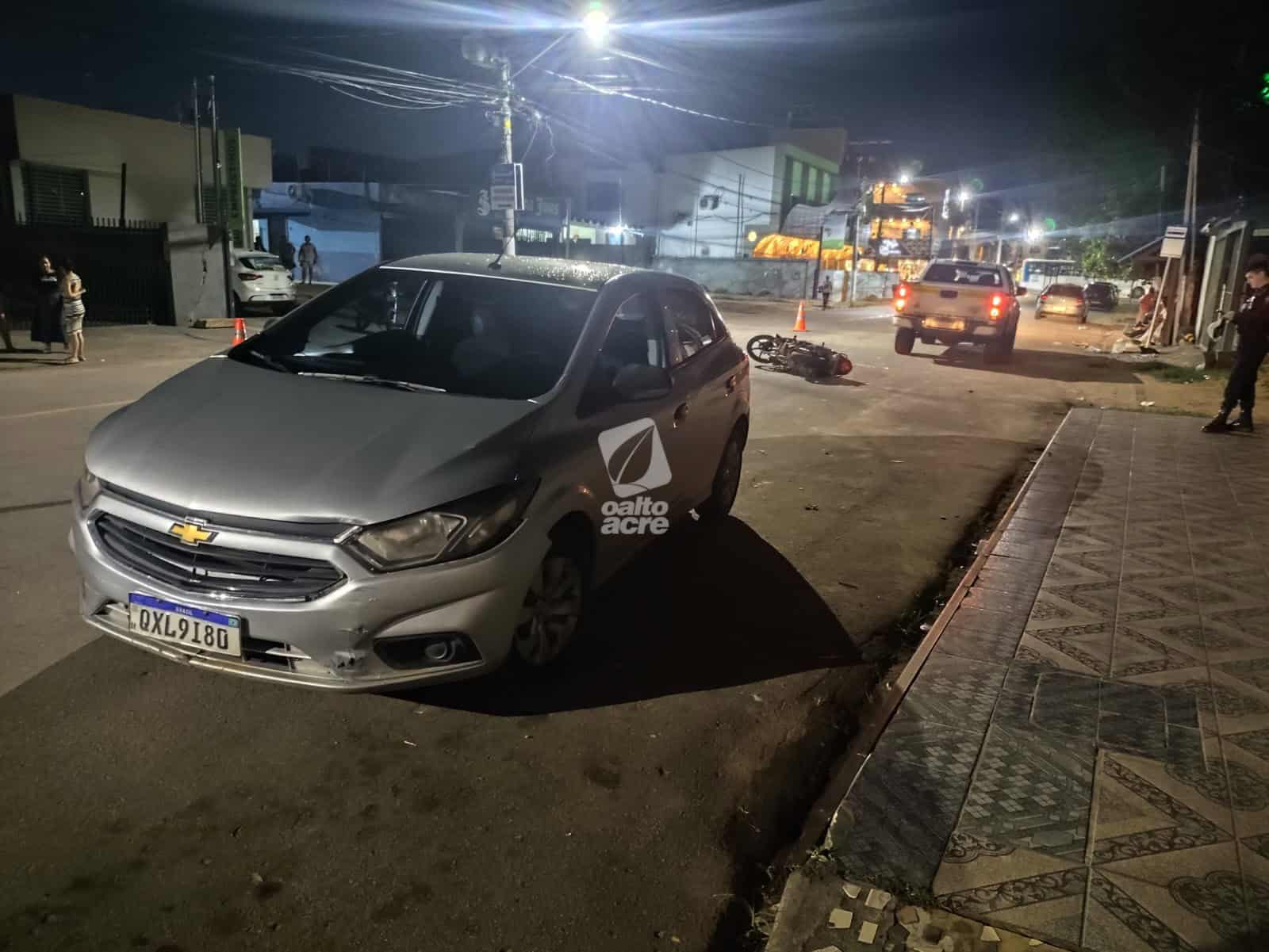 Um acidente envolvendo um carro e uma motocicleta deixou duas pessoas feridas na noite desta sexta-feira (21), na Rua Amazonas, no bairro Cadeia Velha, em Rio Branco. As vítimas, que estavam em uma Honda Biz vermelha, foram identificadas como Sandoval da Silva Pacheco, de 44 anos, e Ingrid de Jesus Santos, de 43 anos.