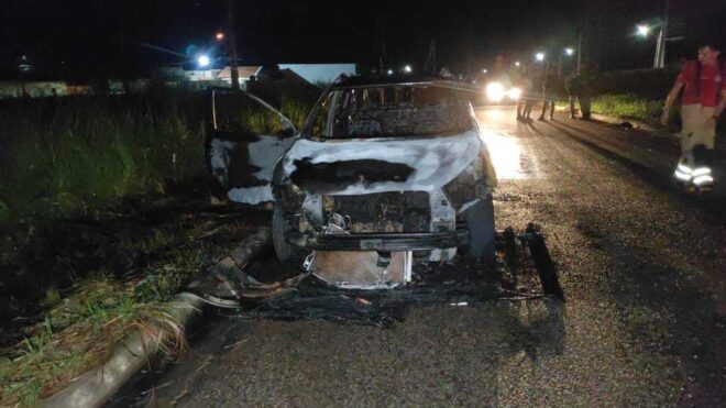 Um carro modelo Hyundai IX35 que supostamente teria sido usado em várias ações criminosas foi incendiado na noite deste sábado (26), na rua Tabosa, na rotatória do Residencial Bom Sucesso, na região da Baixada da Sobral, em Rio Branco.