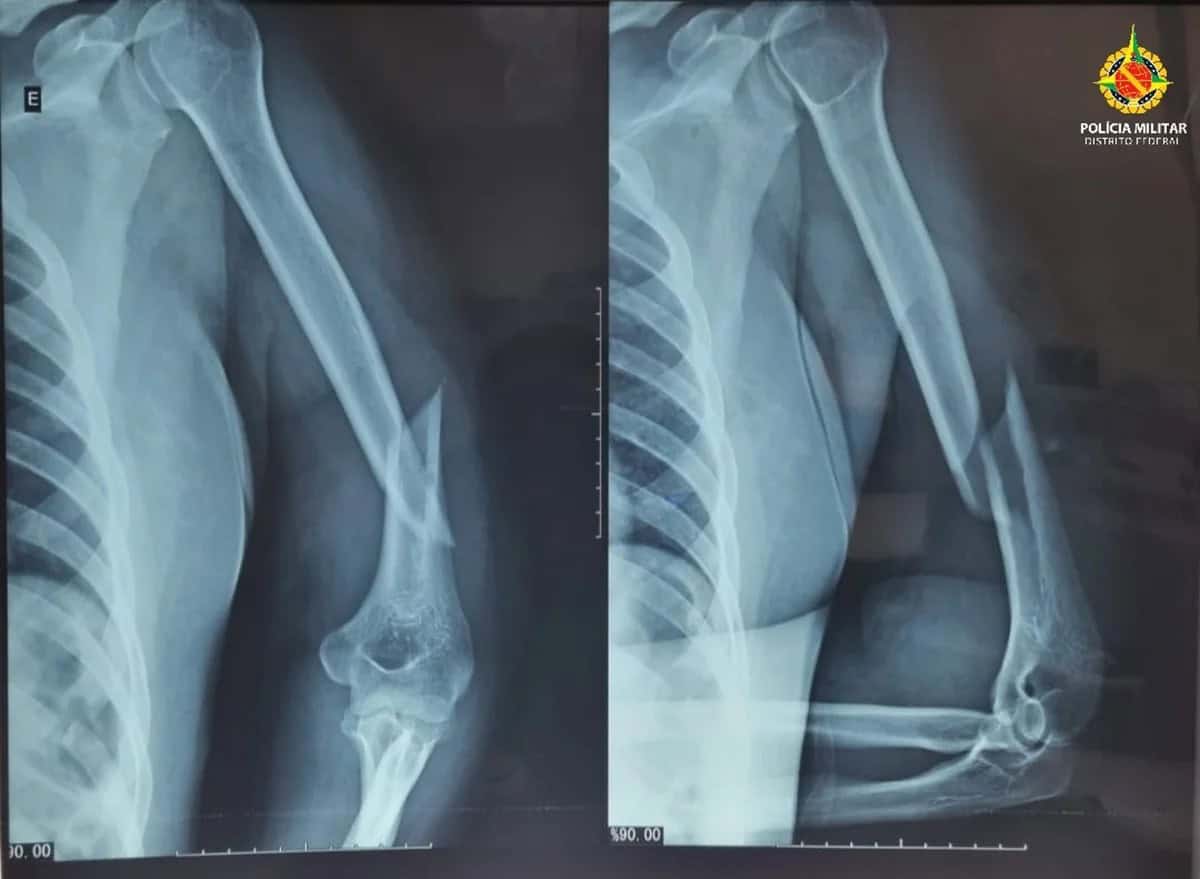 Segundo a Polícia Militar do DF (PMDF), uma equipe foi acionada para atender uma ocorrência de violência doméstica e, no local, constatou que a vítima, de 41 anos, apresentava hematomas no rosto, inchaço ao redor dos olhos, sangramento pelos ouvidos, fratura no úmero esquerdo e luxação no ombro esquerdo.