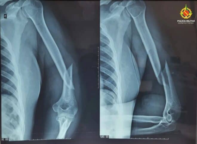 Segundo a Polícia Militar do DF (PMDF), uma equipe foi acionada para atender uma ocorrência de violência doméstica e, no local, constatou que a vítima, de 41 anos, apresentava hematomas no rosto, inchaço ao redor dos olhos, sangramento pelos ouvidos, fratura no úmero esquerdo e luxação no ombro esquerdo.