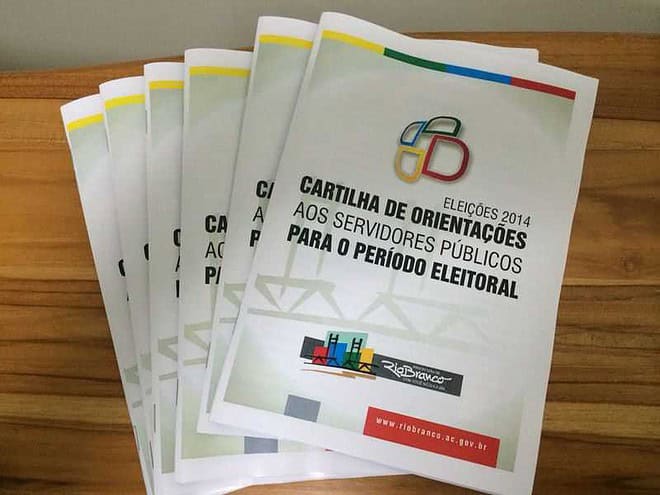 Os servidores do Estado receberão uma cartilha elaborada pela Procuradoria Geral do Estado do Acre (PGE-AC), com orientações sobre as ações vedadas aos agentes públicos durante o período eleitoral de 2014. O objetivo é esclarecer de forma simples sobre as proibições impostas pela legislação eleitoral, bem como suas penalidades. Uma das ações a serem implantadas a partir do dia 1º de julho é a desativação dos celulares governamentais. O material foi apresentando nesta quarta-feira (4), na Biblioteca da Floresta.