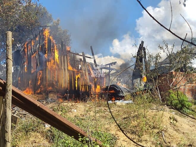 Uma residência de madeira foi completamente consumida pelo fogo na manhã desta segunda-feira (4), no bairro José Hassem, próximo ao posto da Receita Federal, na cidade de Epitaciolândia, na fronteira com a Bolívia. A moradora do imóvel, Luanara Moreira de Almeida, de 28 anos, conseguiu escapar ilesa junto aos três filhos pequenos.