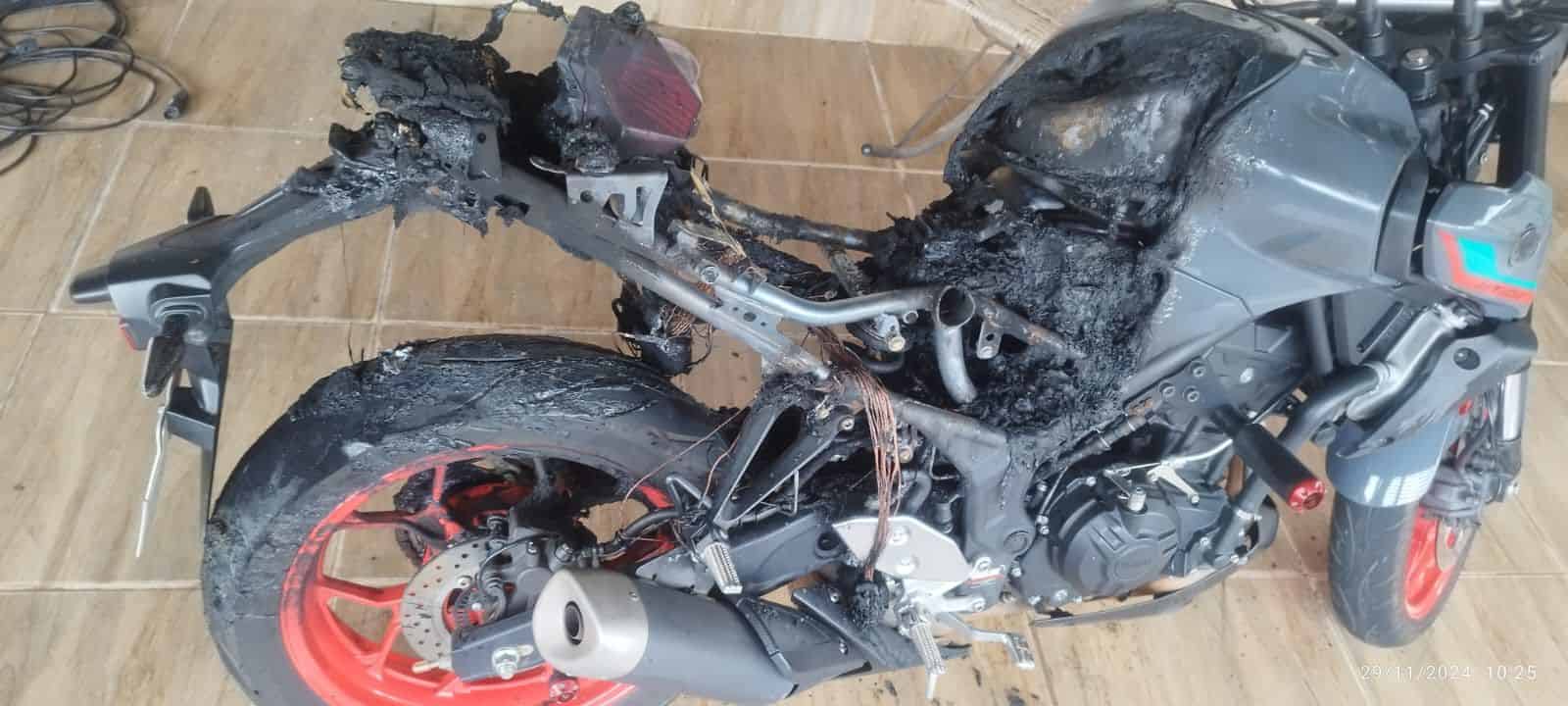 Na madrugada desta terça-feira (19), por volta de 1h30, a residência de um policial militar em Brasiléia foi alvo de um atentado criminoso. Dois indivíduos em uma motocicleta, possivelmente do modelo Kyngo, lançaram um artefato incendiário, conhecido como “coquetel molotov”, contra a área externa da casa. O ataque resultou em danos à motocicleta do irmão do policial, que estava estacionada no local, e representou um grave risco à integridade da família.