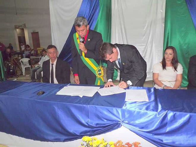 A solenidade de transmissão do cargo de prefeito foi realizada no ginásio Álvaro da Silva Mota, na noite desta quarta-feira (1º). Marcinho Pereira Miranda (PSDB), recebeu a faixa de Bira Vasconcelos em ato que não ocorria há 16 anos, quando o ex-prefeito José da Silva Cunha, já falecido, repassou a faixa de prefeito a Júlio Barbosa de Aquino, que administrou o município por dois mandatos consecutivos.