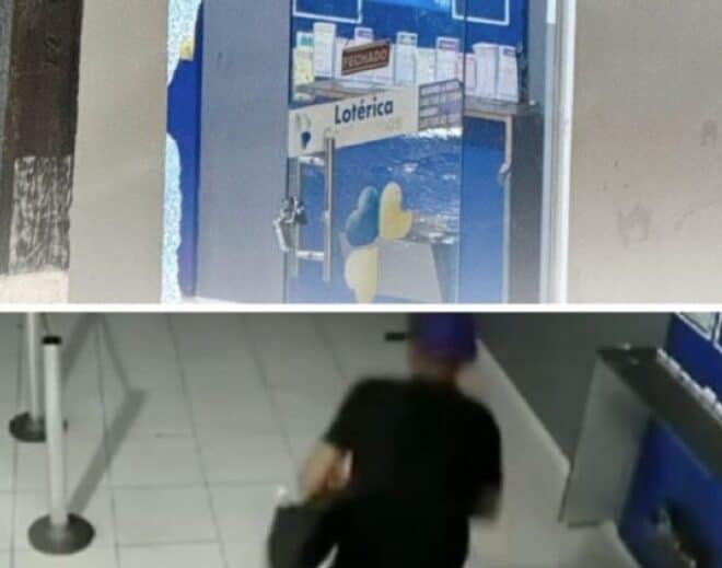 Por volta das 3h43, um indivíduo, aparentemente dependente químico, quebrou as portas de vidro da lotérica e acessou o interior do estabelecimento. As câmeras de segurança registraram o momento em que o suspeito chegou de bicicleta, forçou a entrada e vasculhou os caixas em busca de dinheiro, sem sucesso. Toda a ação durou menos de dois minutos.