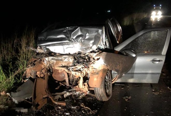 O caminhoneiro, que foi interrogado pela Polícia Militar, disse que o Pálio invadiu a pista e bateu de frente com o caminhão.