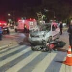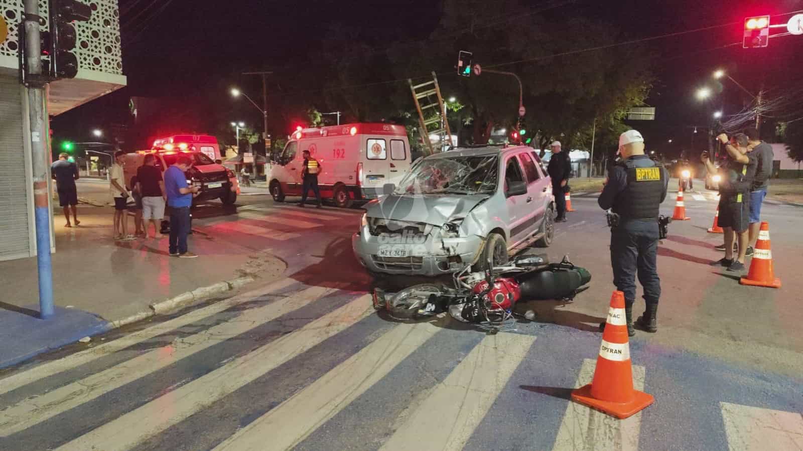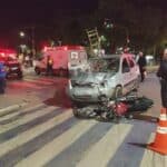 Motociclista teve fraturas nos dois fêmures e motorista do carro foi preso por suspeita de embriaguez
