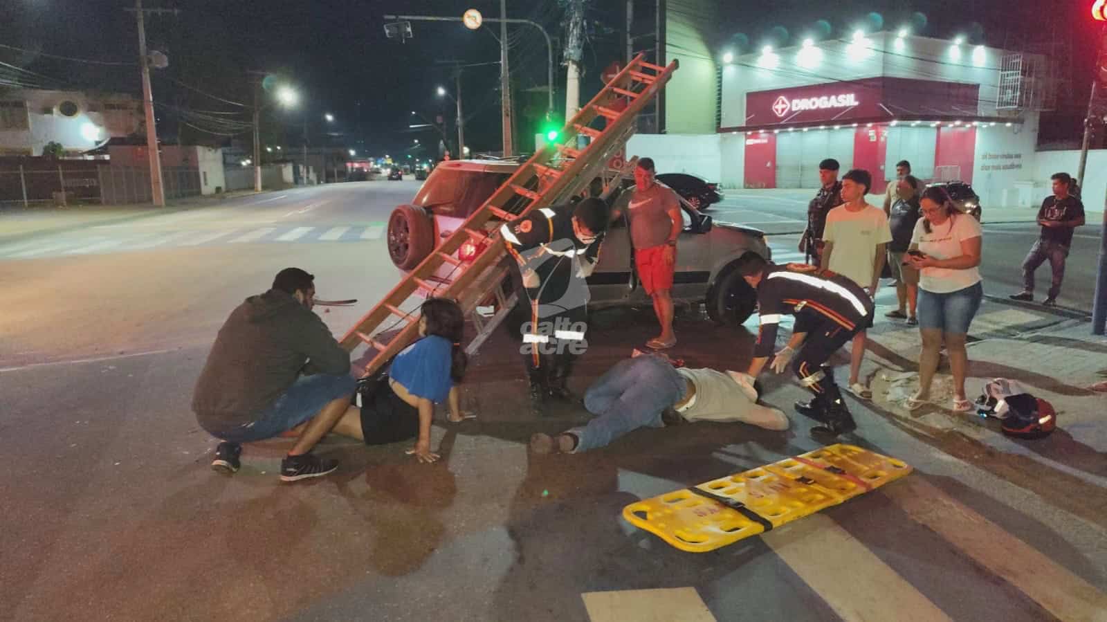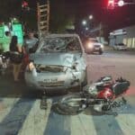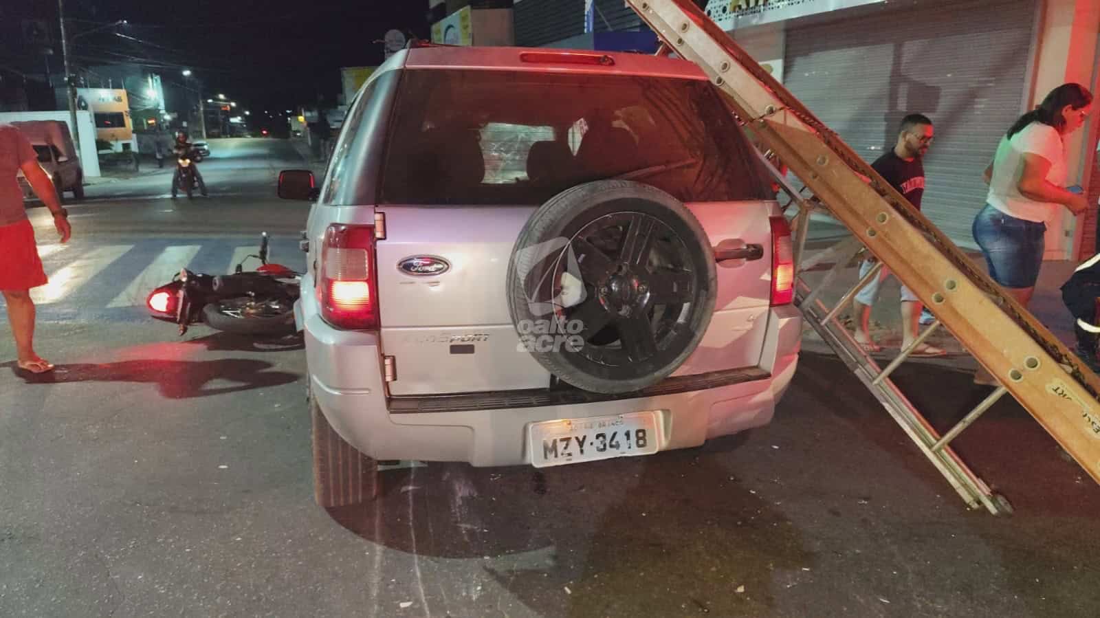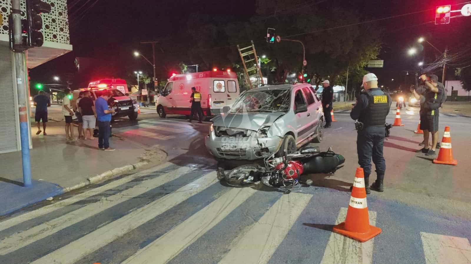 Um acidente de trânsito registrado na madrugada deste domingo (29) deixou duas pessoas feridas no cruzamento da Avenida Ceará com a Rua Marechal Deodoro, no Centro de Rio Branco. O casal Ingred Maria Silva Costa, de 30 anos, e Wanderson Miranda Sales, de 23, estava em uma motocicleta quando foi atingido por um carro cujo condutor teria desrespeitado a sinalização.