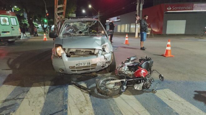 Motociclista teve fraturas nos dois fêmures e motorista do carro foi preso por suspeita de embriaguez