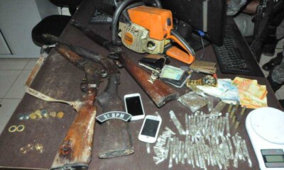Na revista efetuada na residências onde os acusados estavam foi encontrado grande quantidade de maconha e pasta base de cocaína, além de celulares e dinheiro Policiais...