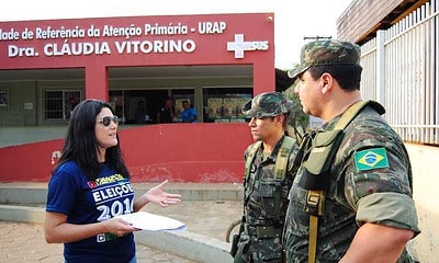 Para garantir a segurança do processo eleitoral nesse primeiro turno das Eleições de 2016, as forças de segurança fizeram o reconhecimento dos locais de votação em...
