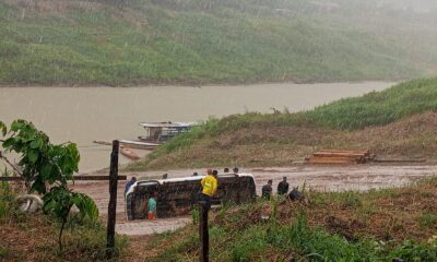 Prefeitura e populares auxiliaram na retirada do veículo; ninguém ficou ferido Uma caminhonete tombou na tarde desta quinta-feira (4) na Praia do Amarilho, em Sena Madureira,...