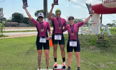 As duatletas acreanas Patrícia Maciel (Contém Vida e AME), em primeiro, Ane Lima (2º) e Cláudia Pinho (3º) dominaram o pódio da etapa do Circuito Norte...