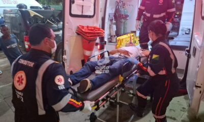 Colisão ocorreu em frente a unidade de saúde; vítima foi socorrida consciente e levada ao hospital Um acidente de trânsito envolvendo um carro e uma motocicleta...