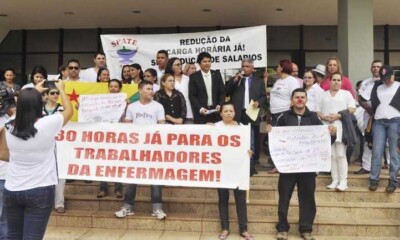 Ângela Rodrigues, do ac24horas Os profissionais auxiliares e técnicos de enfermagem sindicalizados realizam na manhã desta terça-feira, 12 de maio, um ato público em repúdio ao...