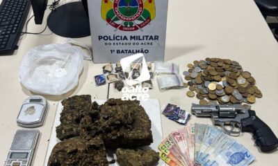 Policiais do 1º Batalhão apreenderam mais de um quilo de maconha, cocaína e dinheiro durante ação em Rio Branco. Uma ação realizada por policiais militares do...