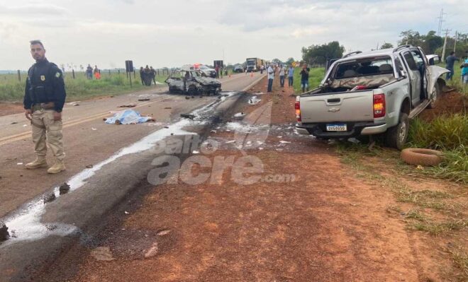 O trágico acidente que terminou com duas mortes e quatro feridos na BR 317, envolvendo um veículo Fiat/Uno e uma caminhonete Chevrolet/S10, na tarde desta segunda-feira, dia 13, ainda está sendo investigada, mas, segundo pessoas que presenciaram o acidente, o motorista do veículo Fiat Uno, que trafegava no sentido Xapuri-Rio Branco, tentou fazer uma conversão à esquerda para entrar no ramal da Alcoobrás e colidiu de frente com a caminhonete.