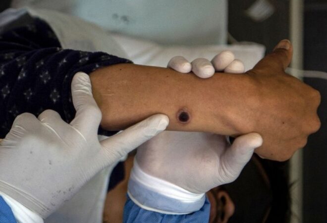 A orientação é que pessoas com lesões características na pele, acompanhadas ou não de febre, procurem atendimento médico imediato em uma Unidade Básica de Saúde (UBS) ou Unidade de Pronto Atendimento (UPA).