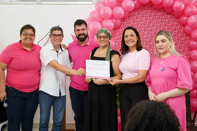 Durante a celebração, as servidoras Evaniza Mota, Siglia França, Gleyce Braz, Rosana Itane, Leda Fontenele e Suzi Pascoal, além das pacientes Iri Nobre e Erivalda Menezes receberam o título de embaixadoras do Cecon, pela luta contra o câncer.