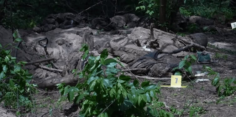 A vala comum estava localizada logo atrás de uma trincheira cavada para um veículo militar.