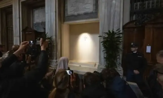 Seu caixão foi levado para lá no sábado, após a missa de corpo presente na Praça de São Pedro, com milhares de pessoas percorrendo o caminho pelo coração da cidade para se despedir.