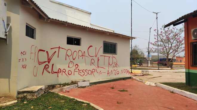 Nesta terça-feira, 3 de setembro, as paredes do recém-inaugurado Centro Cultural, que foi entregue aos populares no último dia 27 de junho, foram alvo de pichações. As marcas deixadas nas paredes exibem as inscrições “CV” e “B13”, em referência a facções criminosas conhecidas no Brasil.