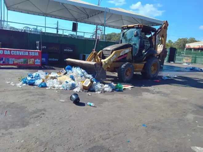 Nas primeiras horas da manhã, equipes já estavam em campo para recolher resíduos acumulados não só dentro do parque, mas também nas ruas e avenidas próximas, onde há maior concentração de lixo após eventos de grande porte.