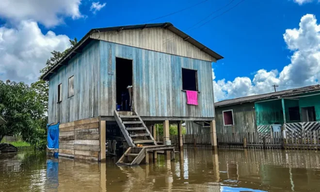 O rio Acre atingiu 15,71 metros neste sábado, 15, e continua subindo, inundando ruas e casas na Travessa Santa Terezinha, no bairro 6 de Agosto, em Rio Branco (AC). O repórter do ac24horas, David Medeiros, esteve in loco acompanhando como os moradores enfrentam a cheia com preocupação, enquanto alguns resistem em suas residências para proteger seus pertences.