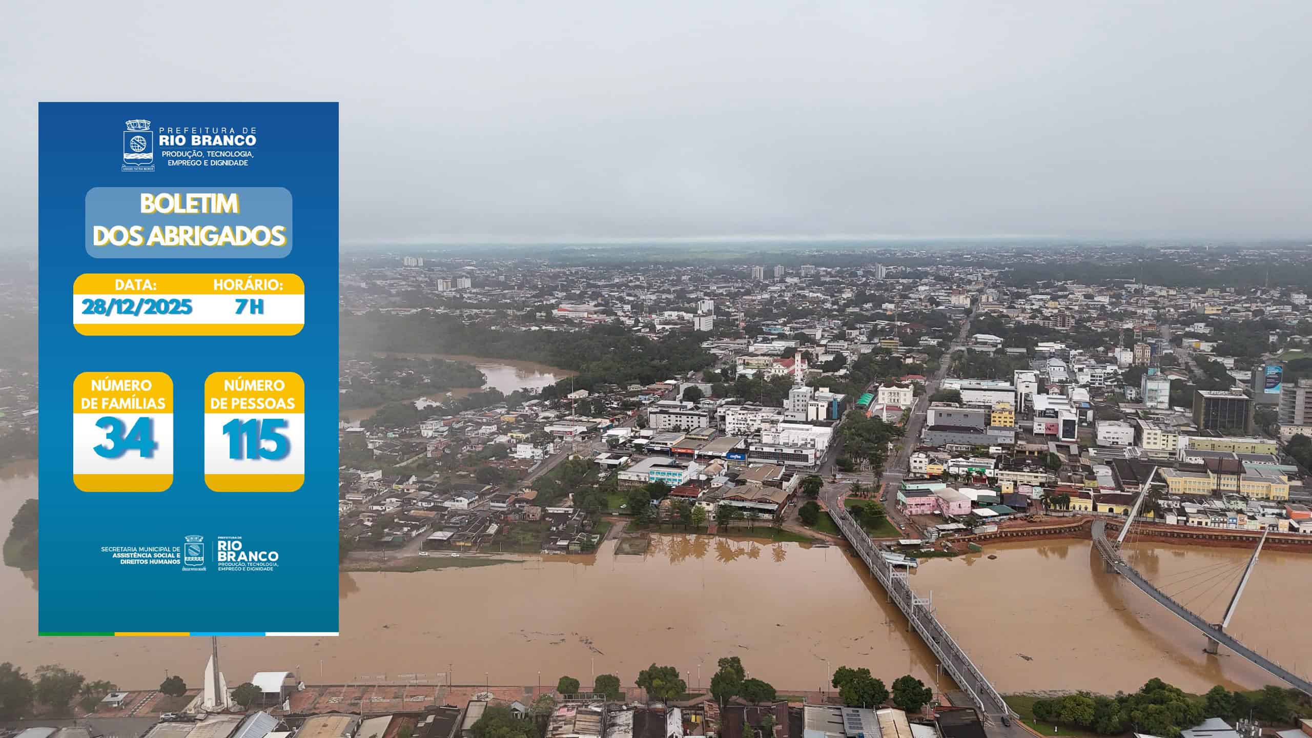 Os dados constam no Boletim dos Abrigados, divulgado pela Prefeitura de Rio Branco por meio da Secretaria Municipal de Assistência Social e Direitos Humanos, dentro das ações coordenadas pelas áreas de Produção, Tecnologia, Emprego e Dignidade. O levantamento reflete o aumento da demanda por acolhimento após as chuvas intensas que agravaram o cenário de cheia na capital.