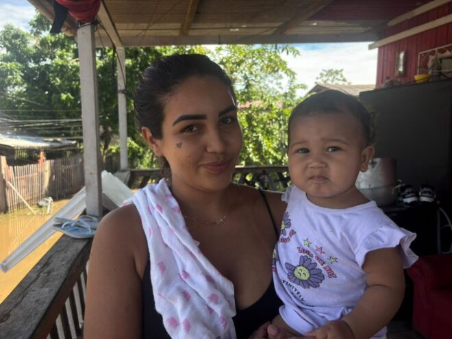 O nível do rio continua subindo mesmo sem chuva: na medição das 9h desta segunda-feira (29), marcava 15,36 metros, um aumento de 42 centímetros em 24 horas sem precipitação. A surpresa com a cheia em dezembro foi expressa por moradores como Janaína Brenna, de 22 anos, que vive no bairro Seis de Agosto: “Ninguém estava esperando […] é mais para fevereiro e março. E ainda assim, Natal, Ano Novo, você pensa que quando vai festejar, vem isso”.