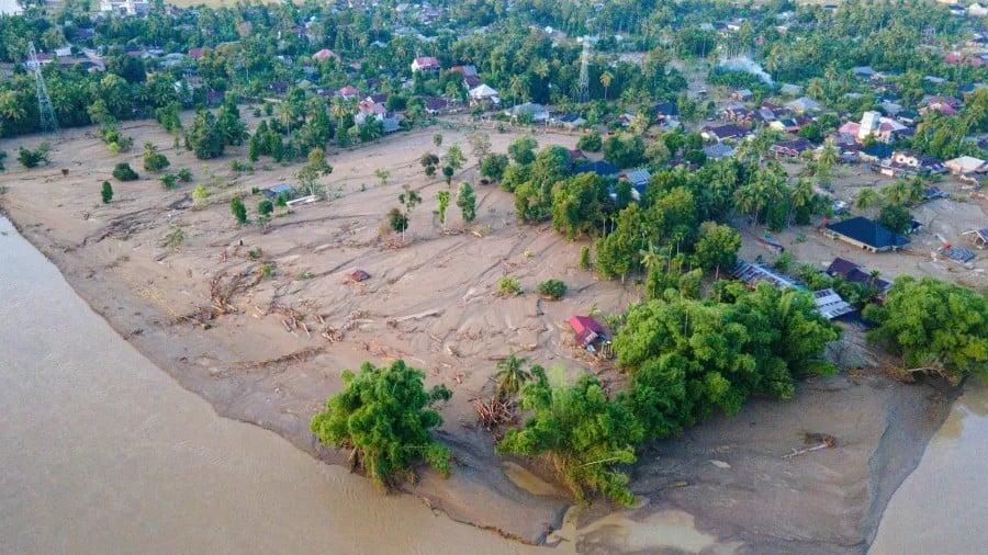 Vista aérea mostra estragos de enchentes em vilarejo de Aceh, na Indonésia Imagem: Chaideer Mahyuddin/AFP