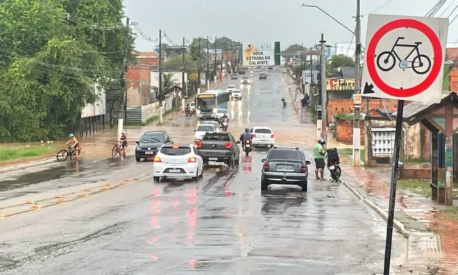 A forte chuva deixou diversos pontos de alagamento em Rio Branco, incluindo ruas do Residencial Bom Sucesso, Baixada da Sobral, João Eduardo e parte da rotatória da Havan na estrada do Calafate. O Calçadão Raimundo Escócio também foi tomado pela água, causando transtornos aos comerciantes.