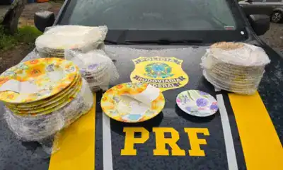 Segundo a PRF, a passageira apresentou nervosismo durante a verificação de documentos e informou que seguiria para Fortaleza. Durante a inspeção na bagagem, os agentes localizaram 41 pratos com características suspeitas.
