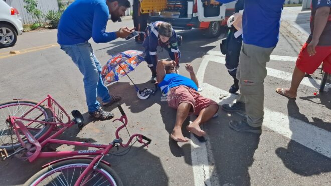O ciclista Antônio Vieira da Silva, de 57 anos, ficou ferido após ser atropelado por um caminhão Mercedes-Benz 1516na tarde deste sábado (31), na rua Epaminondas Jácome, no bairro da Base, em Rio Branco.