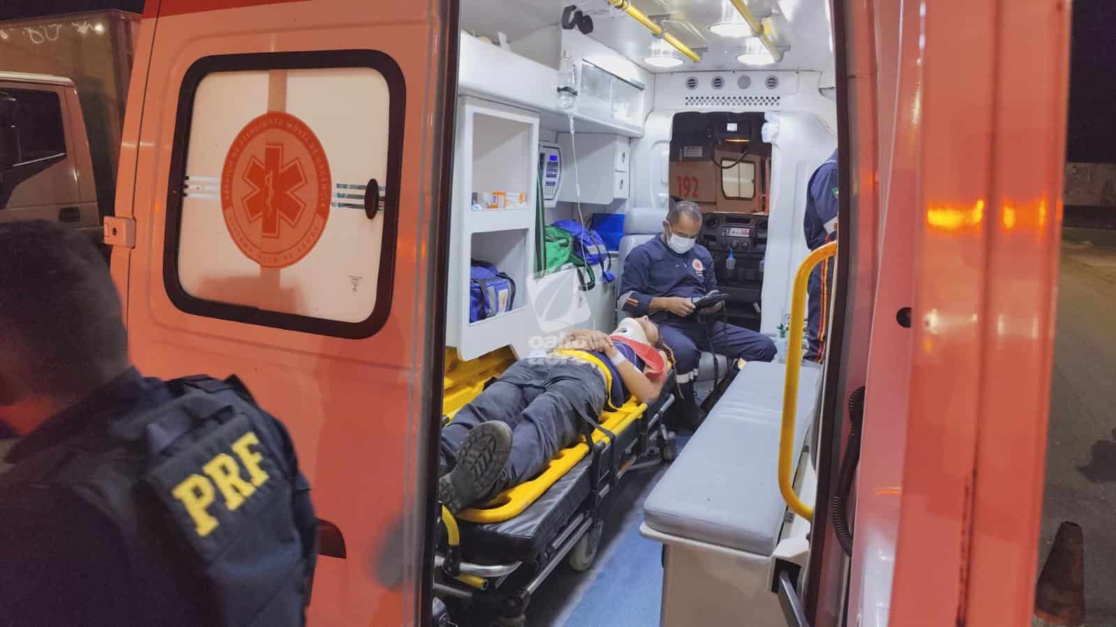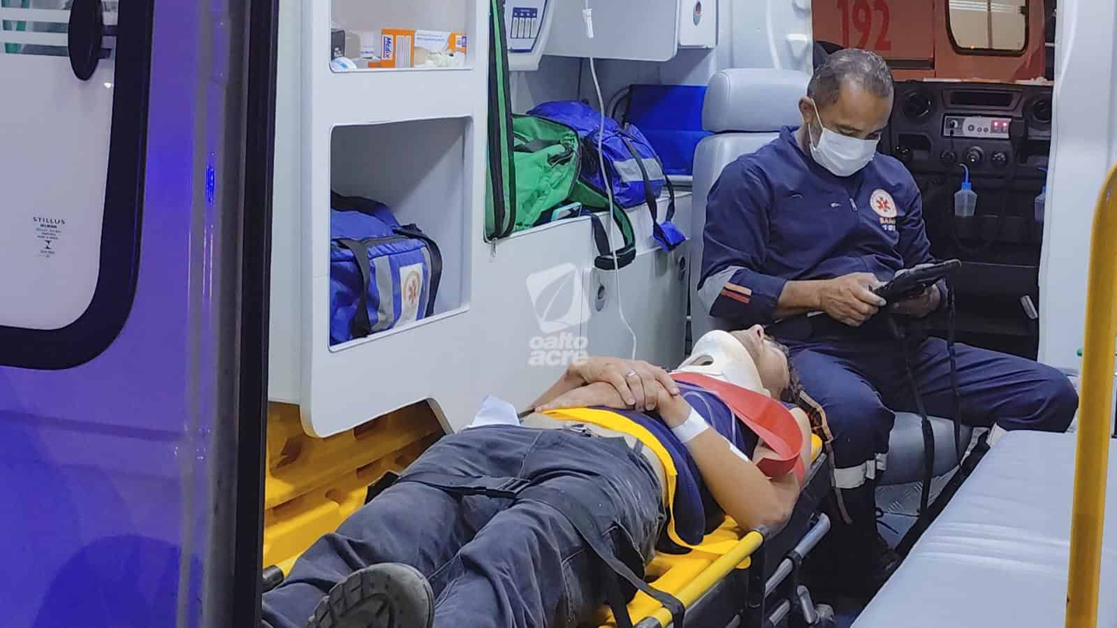 Um acidente registrado na noite desta sexta-feira (26) deixou o ciclista João Victor Aquino, de 22 anos, ferido após ser atingido por uma motocicleta na BR-364, em frente à Fundação Hospitalar do Acre (Fundacre), em Rio Branco.