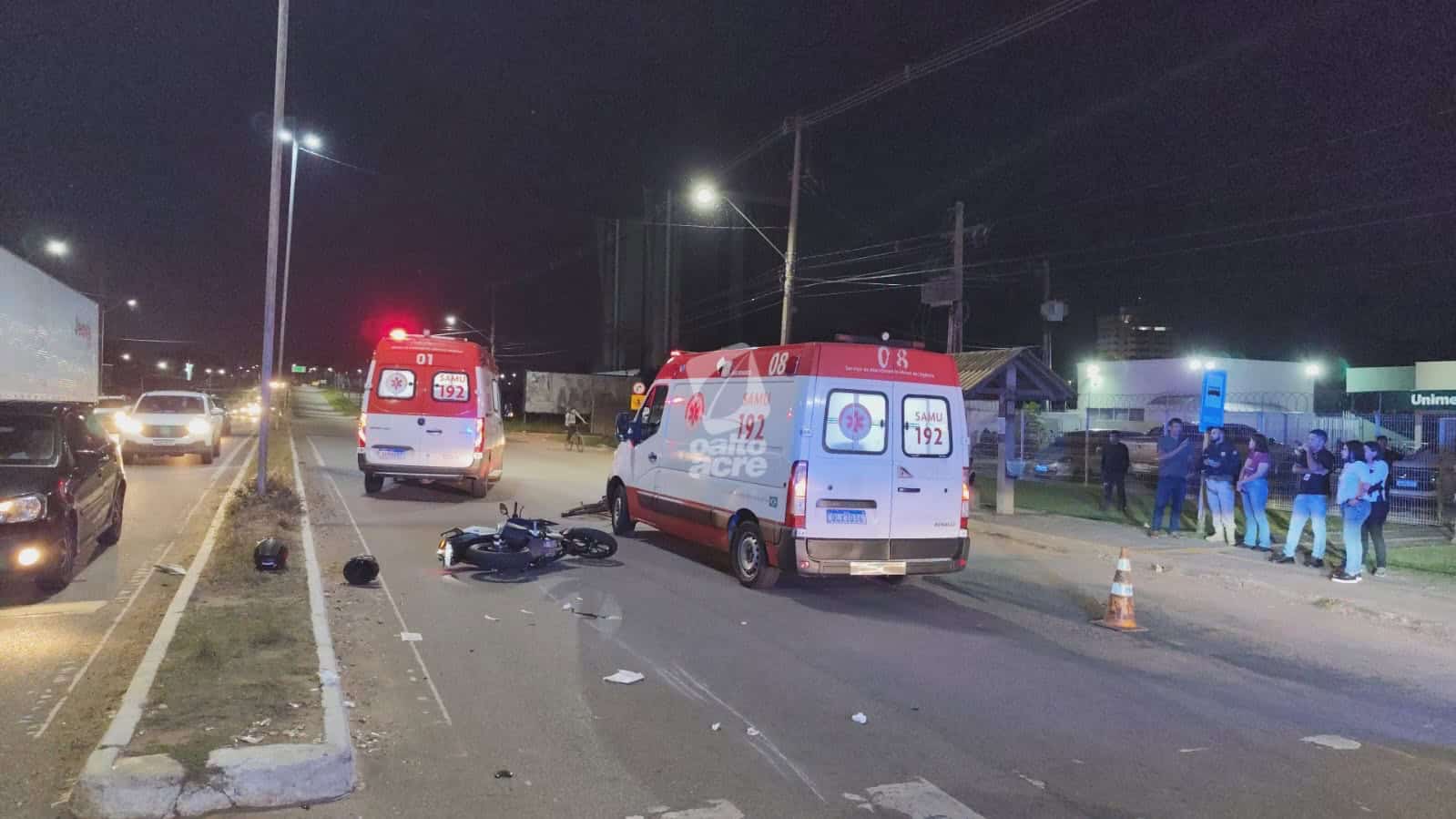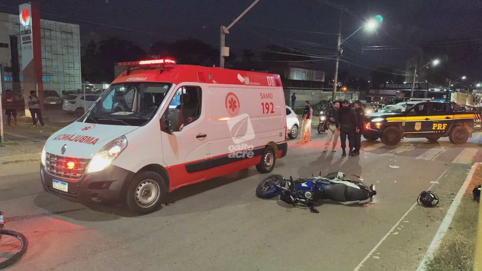 Ciclista é atropelado por motocicleta e fica ferido em frente à Fundacre, em Rio Branco