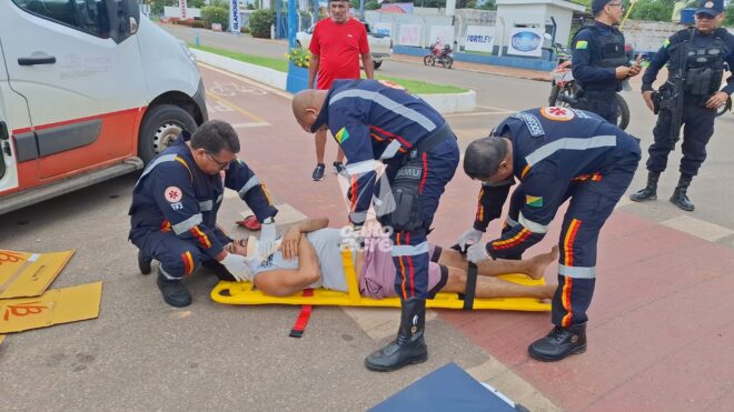 Acidente ocorreu na Via Chico Mendes, no bairro Comara; vítima foi socorrida e encaminhada ao Pronto-Socorro