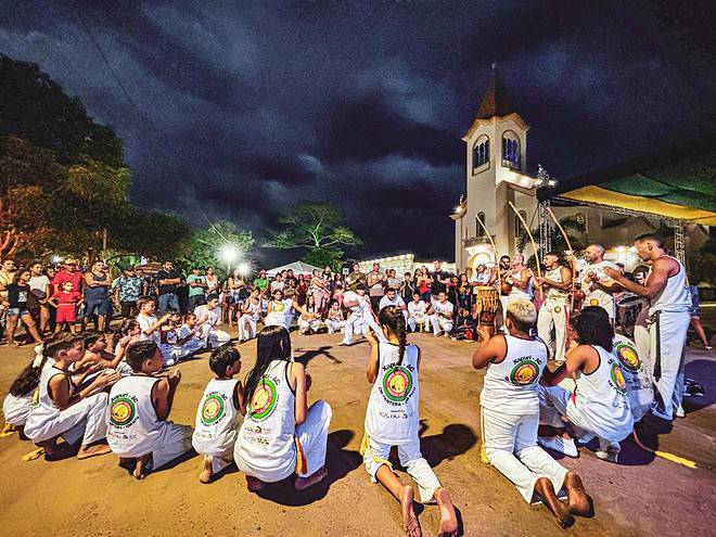 No começo da noite, a cultura afro-brasileira foi celebrada com uma roda de capoeira organizada pelo grupo Senzala. O prefeito Maxsuel Maia também participou da roda, mostrando apoio e valorização às manifestações culturais que enriquecem a diversidade da cidade.