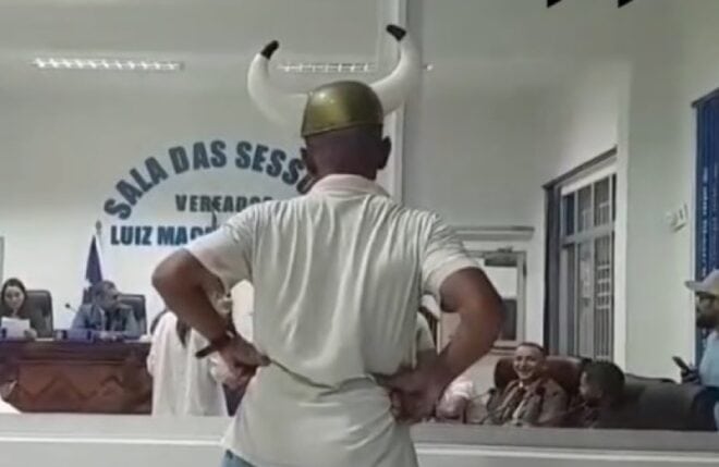 Na noite da última quinta-feira, dia 8, uma cena inesperada chamou a atenção durante a sessão da Câmara Municipal de Cruzeiro do Sul. Um homem, usando um chamativo “chapéu de corno”, adentrou a galeria do público e começou a fazer gestos de cobrança em direção aos vereadores, do outro lado do vidro que separa os espaços.